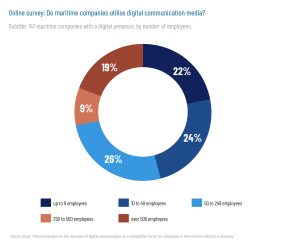 To this end, the strategic possibilities of digital media for maintaining the competitiveness and future viability of the maritime economy needed to be assessed. In an empirical survey of maritime companies, the status quo of digital communication activities in the maritime industry was recorded and the potential areas for improvement were identified. In conclusion, concrete recommendations for action should be provided for operational implementation, taking into account limited financial and time resources.