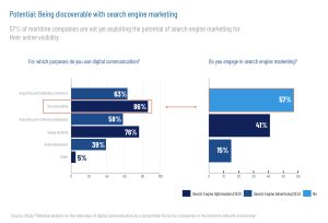 The upcoming generation of potential employees and decision-makers involved in the procurement process obtain their information online and make their decisions on this basis. The ARD/ZDF Online Study 2022, for example, illustrates the extent of digital media use among individuals aged 14 to 29: this age group spends an average of 413 minutes per day on the internet, which is about 7 hours. This trend affects all communication and information media. Whether it be a website, a newsletter or social media – the potential analysis shows that the opportunities presented by digital communication methods to increase competitiveness in the maritime industry are not yet being fully exploited. This conclusion is drawn from the comparison between theoretical observations of the potential of digital platforms and the status quo recorded in an online survey: