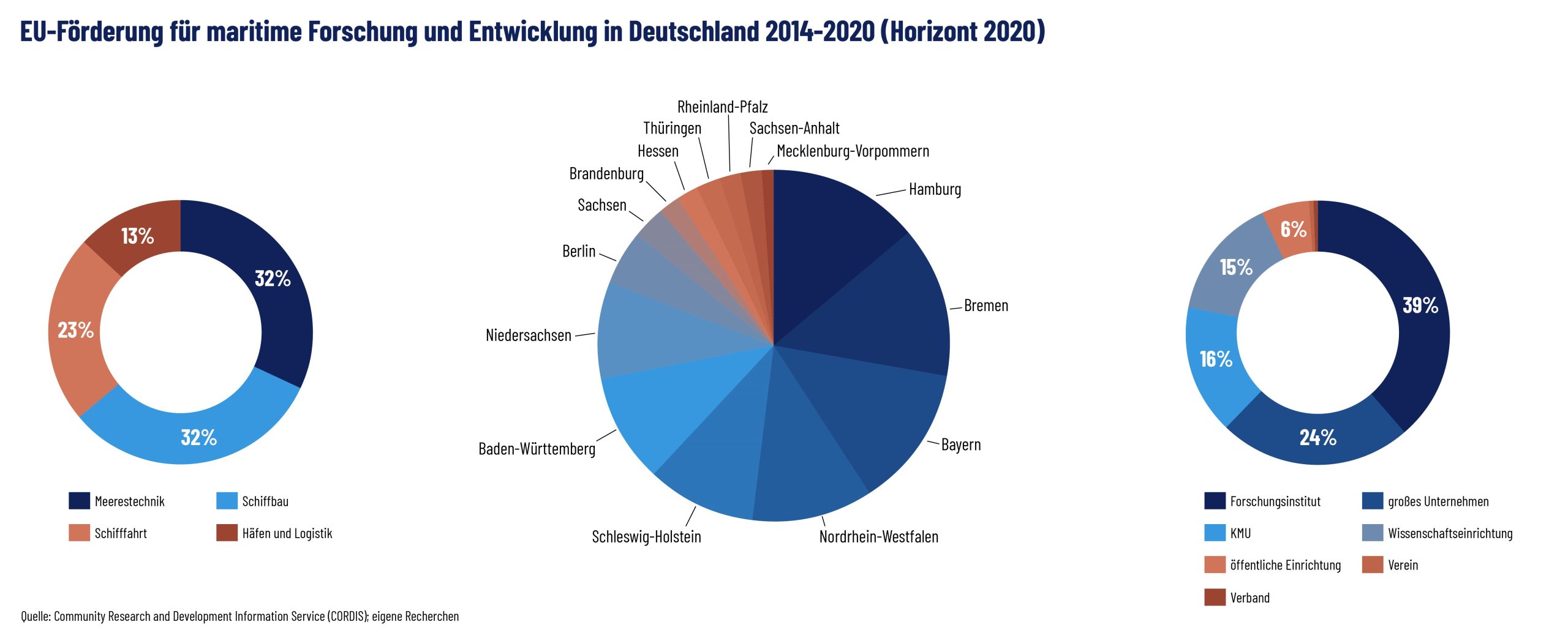 Im Rahmen des europäischen Forschungsrahmenprogramms Horizont 2020 haben die maritimen Teilbranchen in den Jahren 2014 - 2020 Fördermittel für vielfältige Projekte im gesamten Bundesgebiet akquiriert.