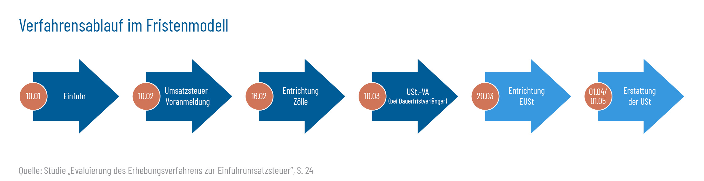 Das von Bund und Ländern in Deutschland eingeführte Fristenmodell kann den Wettbewerbsnachteil Deutschlands gegenüber den europäischen Nachbarn nicht ausgleichen, eine Steigerung der Drittlandeinfuhren konnte in der Studie nicht belegt werden. Trotz verschobener Zahlungsfälligkeit bindet das Fristenmodell (folglich die nach hinten verschobene Fälligkeit) weiterhin Kapital bei den Importeuren.